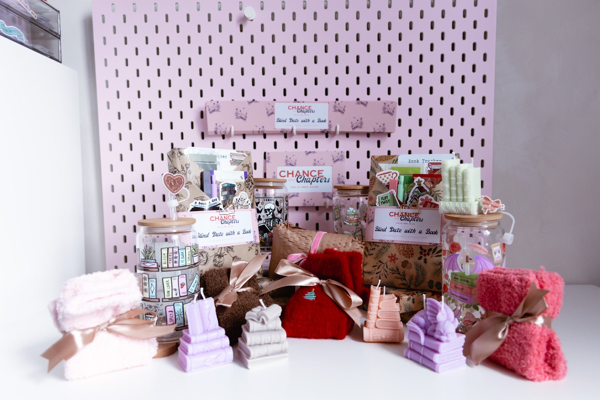 Chance & Chapters is your cozy corner for bookish mystery boxes—each box includes a blind date with a book, a themed glass tumbler, a bookish candle and loads of surprise goodies!